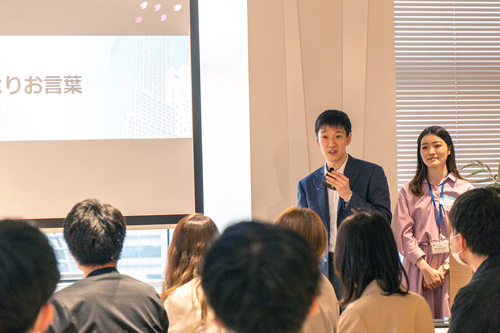A.S.は、「同期が対面でお互いを知る機会がなかったので、それを念頭に入社式のプログラムを考えました。また、さまざまな立場や年代の先輩社員とのネットワークを広げ、それぞれが秘めている考え方や思いに触れたいと思っていました」と、企画の意図を説明しました。