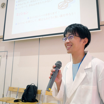 今年も約20名の社員が集まり、講義・質疑応答、実験のヒント出し、実験の安全管理、昼食や移動手段の手配などを分担。私は今年初めて参加し、「おくすりハカセ」として、実験内容の立案や当日の解説などを担当しました。小学生たちが講義も実験も熱心に取り組み、非常に楽しんでいる様子が伝わってきて、私自身楽しい一日を過ごしました。