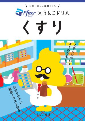 うんこドリルに登場するうんこ先生と一緒に、ファイザーの工場で働いているおくすりハカセ(ファイザー・ファーマ)が、子どもたちにおくすりについて説明したり、質問に答えたりする「薬育授業」では、子どもたちが楽しく学ぶ姿や、ドリルを嬉しそうに手にした姿を見て、私も嬉しくなりました。