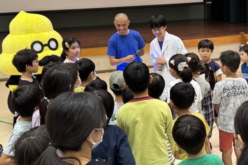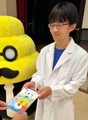 「うんこドリル」とコラボした「薬育授業」では、子どもたちは、クイズ形式でくすりの正しい飲み方などを学ぶことができ、さらにうんこ先生の登場でより一層盛り上がりました。また、楽しむだけでなく、真剣な眼差しで実験を観察したり、積極的に参加してくれたりしたため、私も説明に力が入りました。この経験をきっかけに、くすりと自身の健康に関心を持ち、自ら健康を守る大人へと成長してもらえることを願っています。