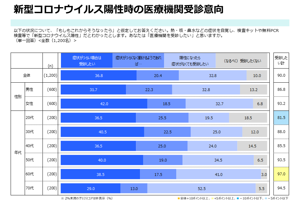 (直近2週間以内に、新型コロナウイルス感染症との診断を受けていない、もしくは新型コロナウイルス感染症を疑う症状がないと回答された方について、年代、性別で100人ごとに均等割付、小数点第二位以下四捨五入)